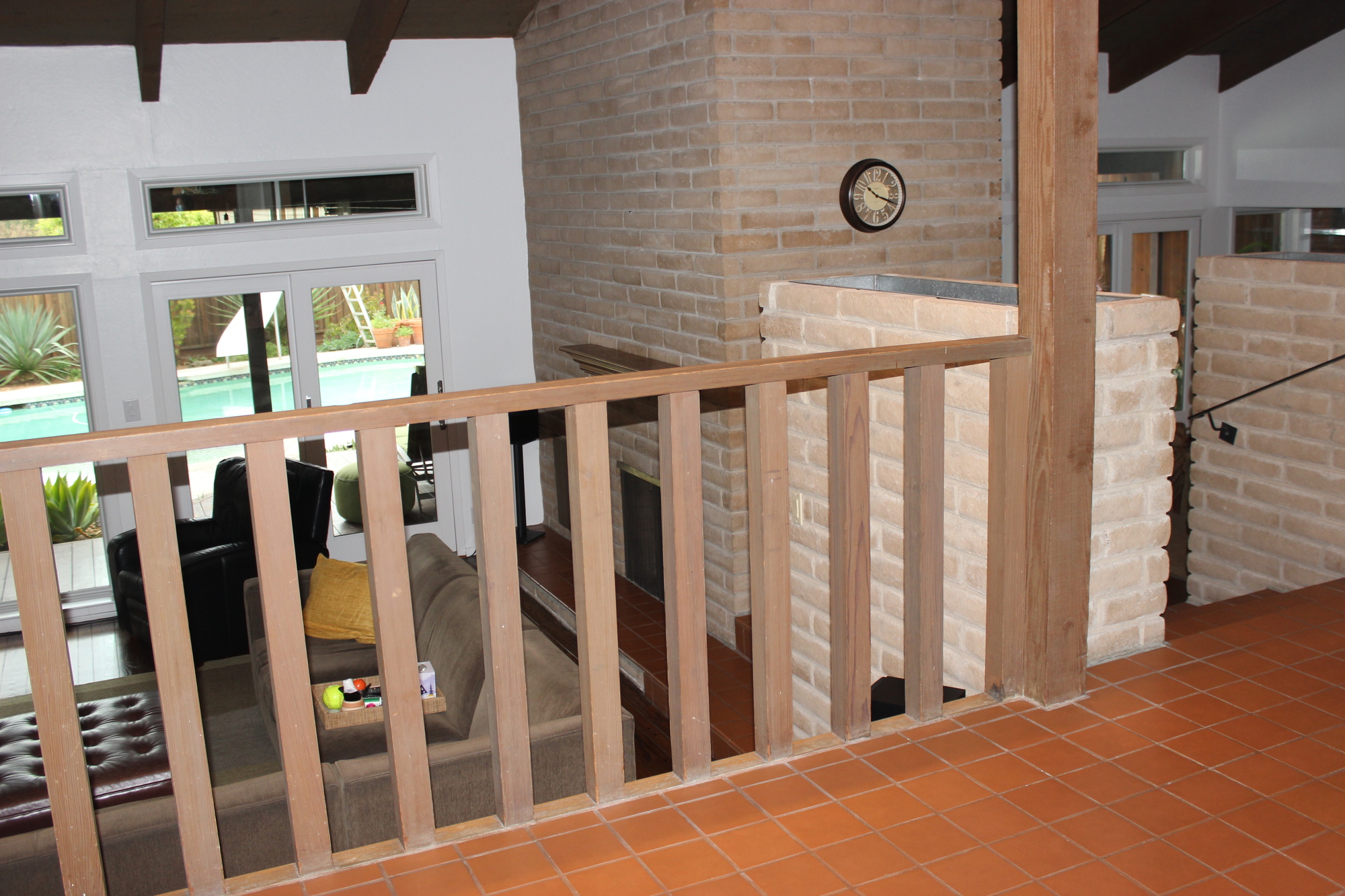 New Oak wood flooring was installed throughout the living room, complimenting the wooden beams charmingly. New Taupe Tile throughout the kitchen, entry way, dinning room, and down the staircase created a perfect balance.